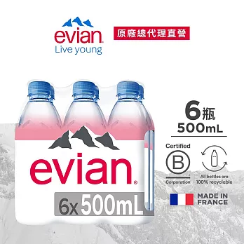 【evian依雲】天然礦泉500ml(6入享樂包-PET)